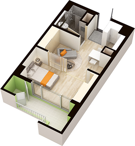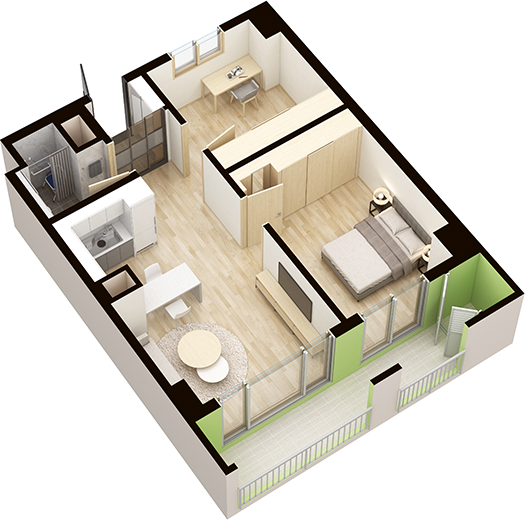 VR시설보기 방1, 거실, 화장실1, 주방으로 구성되어 있습니다. 편의를 위해